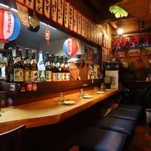 1名様×6席。おひとり様から気軽に沖縄料理を楽しめるカウンター席は、ふらりと立ちれる気軽さが魅力です!また、近い距離で並んで座ってお食事ができるため二人の時間を楽しみたいデートにもオススメです!美味しい沖縄料理とお酒で、くつろぎの空間を楽しめます。お席の予約も承っておりますので、是非ご利用ください!